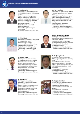 Dr. Do Quang Khanh Groundwater pollution, Mining environment, Oil and gas environment, Reservoir models. Geophysics, Geological maps,